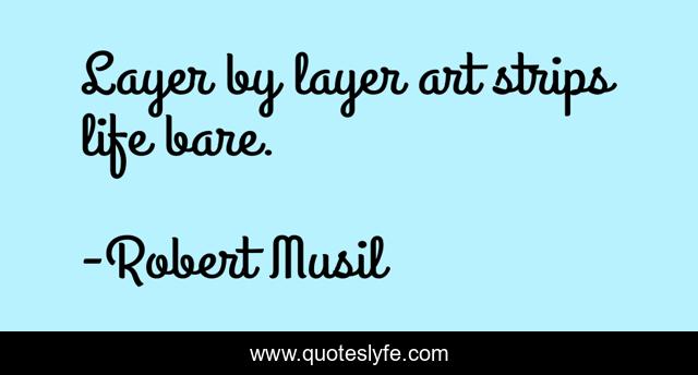This page presents the quote "Layer by layer art strips life bare.". Author of this quote is Robert Musil. This quote is about life, bare, layer,.