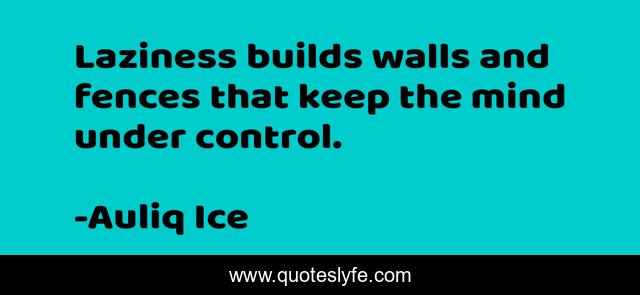 "Auliq Ice Quotes." Quoteslyfe.com, 2025. Sun. 07 Dec. 2025. <https://www.quoteslyfe.com/quote/Laziness-builds-walls-and-fences-that-keep-108305>.