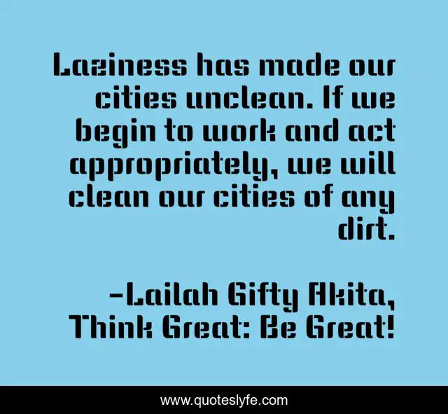 "Lailah Gifty Akita, Think Great: Be Great! Quotes." Quoteslyfe.com, 2025. Mon. 08 Dec. 2025. <https://www.quoteslyfe.com/quote/Laziness-has-made-our-cities-unclean-If-94948>.