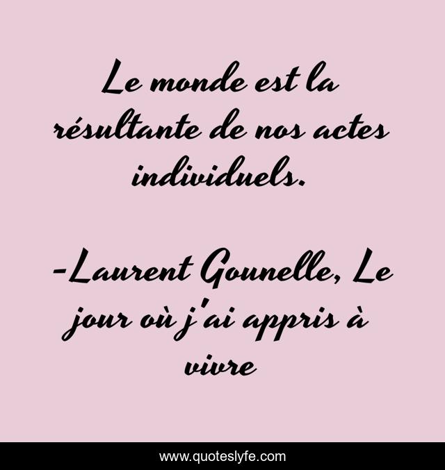 "Laurent Gounelle, Le jour où j'ai appris à vivre Quotes." Quoteslyfe.com, 2025. Sat. 06 Dec. 2025. <https://www.quoteslyfe.com/quote/Le-monde-est-la-r-sultante-de-29310>.