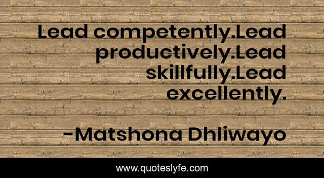 "Matshona Dhliwayo Quotes." Quoteslyfe.com, 2025. Fri. 05 Dec. 2025. <https://www.quoteslyfe.com/quote/Lead-competently-Lead-productively-Lead-skillfully-Lead-257951>.