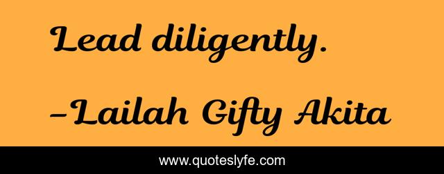 This page presents the quote "Lead diligently.". Author of this quote is Lailah Gifty Akita. This quote is about inspiring, diligence, politicians, lead, government,.