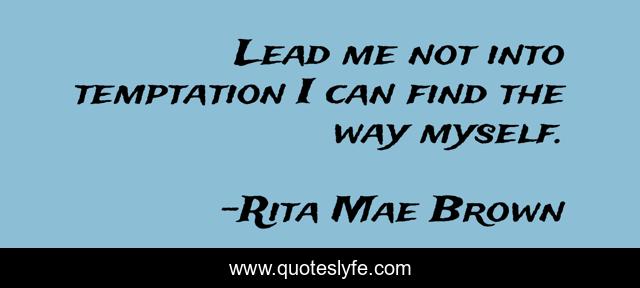 This page presents the quote "Lead me not into temptation I can find the way myself.". Author of this quote is Rita Mae Brown. This quote is about positive, confidence,.