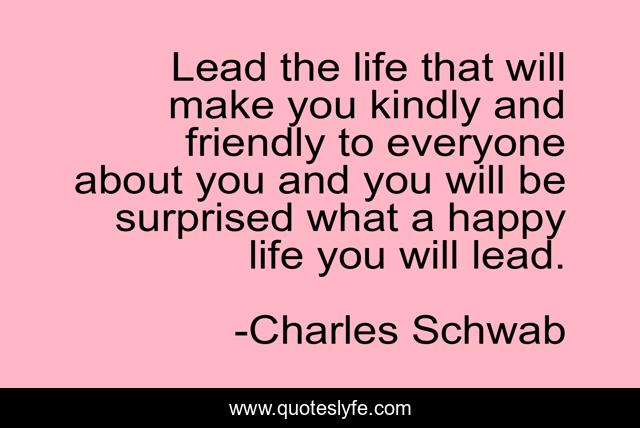 This page presents the quote "Lead the life that will make you kindly and friendly to everyone about you and you will be surprised what a happy life you will lead.". Author of this quote is Charles Schwab. .