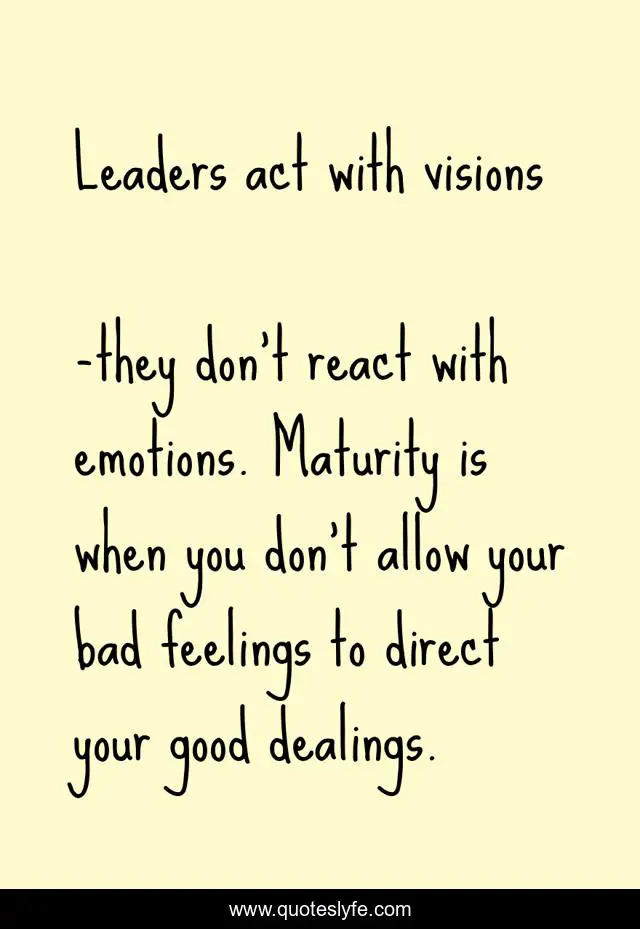 "they don't react with emotions. Maturity is when you don't allow your bad feelings to direct your good dealings. Quotes." Quoteslyfe.com, 2025. Sat. 06 Dec. 2025. <https://www.quoteslyfe.com/quote/Leaders-act-with-visions-64823>.