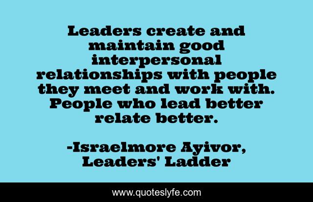 "Israelmore Ayivor, Leaders' Ladder Quotes." Quoteslyfe.com, 2025. Sun. 07 Dec. 2025. <https://www.quoteslyfe.com/quote/Leaders-create-and-maintain-good-interpersonal-relationships-64851>.