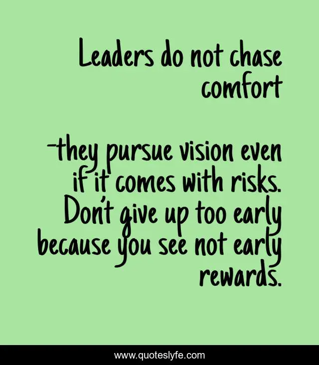 Check all other quotes by they pursue vision even if it comes with risks. Don’t give up too early because you see not early rewards.