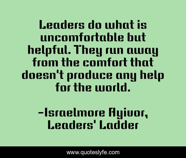 "Israelmore Ayivor, Leaders' Ladder Quotes." Quoteslyfe.com, 2025. Fri. 05 Dec. 2025. <https://www.quoteslyfe.com/quote/Leaders-do-what-is-uncomfortable-but-helpful-65049>.