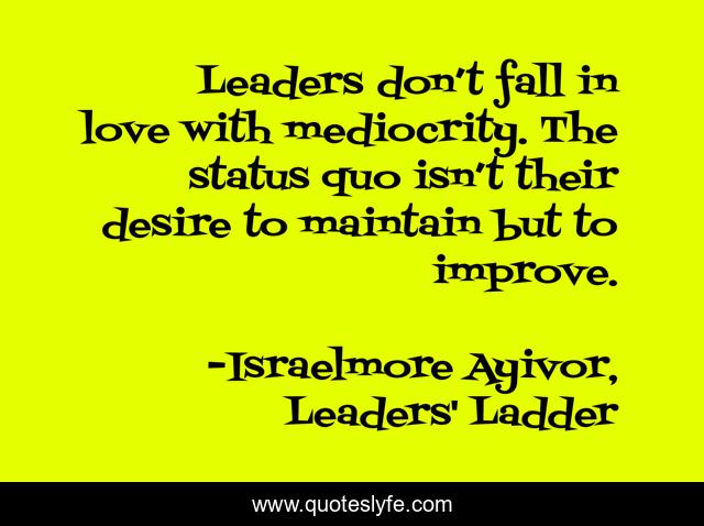 Leaders don’t fall in love with mediocrity. The status quo isn’t their desire to maintain but to improve.