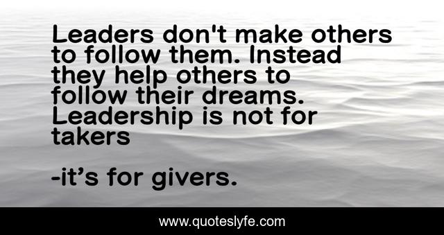 This page presents the quote "Leaders don't make others to follow them. Instead they help others to follow their dreams. Leadership is not for takers". Author of this quote is it’s for givers.. .