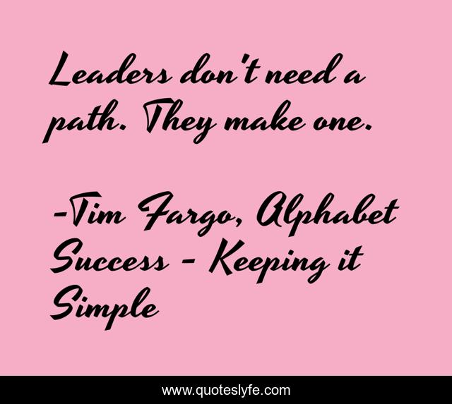 "Tim Fargo, Alphabet Success - Keeping it Simple Quotes." Quoteslyfe.com, 2025. Sat. 06 Dec. 2025. <https://www.quoteslyfe.com/quote/Leaders-don-t-need-a-path-They-189238>.