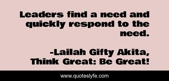 "Lailah Gifty Akita, Think Great: Be Great! Quotes." Quoteslyfe.com, 2025. Fri. 05 Dec. 2025. <https://www.quoteslyfe.com/quote/Leaders-find-a-need-and-quickly-respond-65160>.