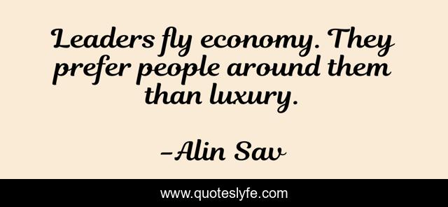 This page presents the quote "Leaders fly economy. They prefer people around them than luxury.". Author of this quote is Alin Sav. .
