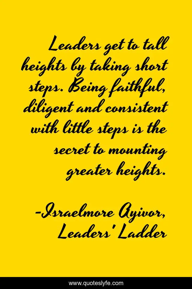 "Israelmore Ayivor, Leaders' Ladder Quotes." Quoteslyfe.com, 2025. Fri. 05 Dec. 2025. <https://www.quoteslyfe.com/quote/Leaders-get-to-tall-heights-by-taking-64827>.