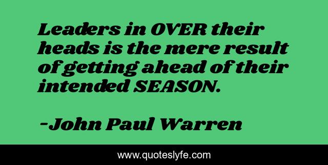 This page presents the quote "Leaders in OVER their heads is the mere result of getting ahead of their intended SEASON.". Author of this quote is John Paul Warren. This quote is about john-warren, bible, pastor-john-paul-warren, john-paul, optimistic, positive, motivational, spiritual, john-paul-warren,.