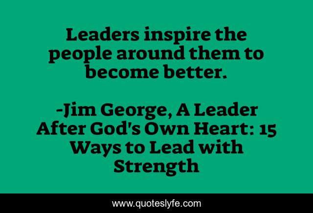 This page presents the quote "Leaders inspire the people around them to become better.". Author of this quote is Jim George, A Leader After God's Own Heart: 15 Ways to Lead with Strength. This quote is about christian, leaders, lead, people, god, better, prayer, improve, inspire,.