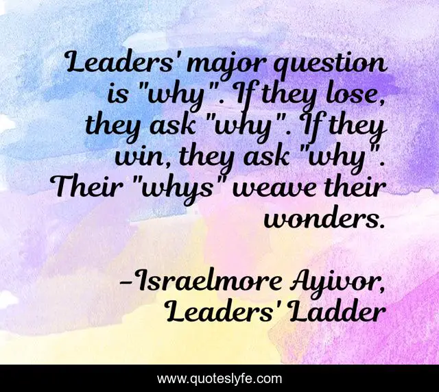 "Israelmore Ayivor, Leaders' Ladder Quotes." Quoteslyfe.com, 2025. Mon. 08 Dec. 2025. <https://www.quoteslyfe.com/quote/Leaders-major-question-is-why-If-they-65033>.