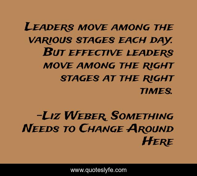 "Liz Weber, Something Needs to Change Around Here Quotes." Quoteslyfe.com, 2025. Sun. 07 Dec. 2025. <https://www.quoteslyfe.com/quote/Leaders-move-among-the-various-stages-each-64285>.
