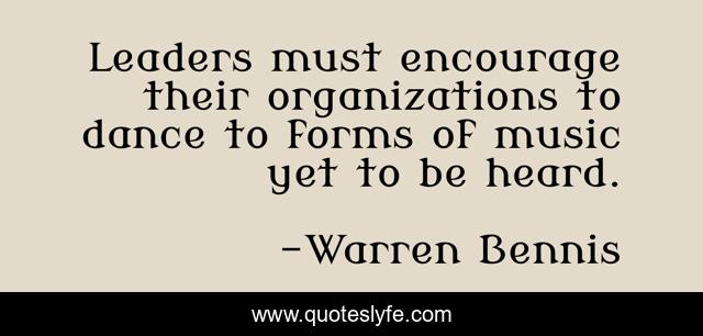 This page presents the quote "Leaders must encourage their organizations to dance to forms of music yet to be heard.". Author of this quote is Warren Bennis. This quote is about dance, music, leaders,.
