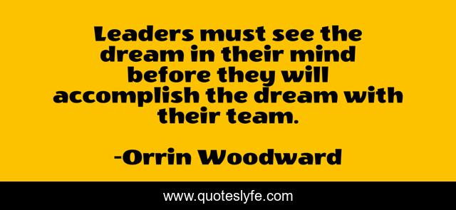 This page presents the quote "Leaders must see the dream in their mind before they will accomplish the dream with their team.". Author of this quote is Orrin Woodward. This quote is about leadership, dream, vision,.