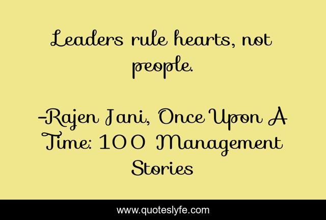 "Rajen Jani, Once Upon A Time: 100 Management Stories Quotes." Quoteslyfe.com, 2025. Sat. 06 Dec. 2025. <https://www.quoteslyfe.com/quote/Leaders-rule-hearts-not-people-31277>.