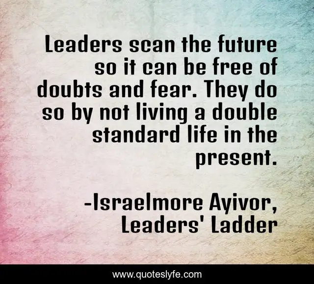 Leaders scan the future so it can be free of doubts and fear. They do so by not living a double standard life in the present.
