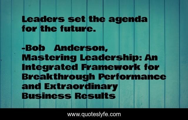 "Bob Anderson, Mastering Leadership: An Integrated Framework for Breakthrough Performance and Extraordinary Business Results Quotes." Quoteslyfe.com, 2025. Sat. 06 Dec. 2025. <https://www.quoteslyfe.com/quote/Leaders-set-the-agenda-for-the-future-65129>.