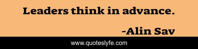 "Alin Sav Quotes." Quoteslyfe.com, 2025. Mon. 08 Dec. 2025. <https://www.quoteslyfe.com/quote/Leaders-think-in-advance-64345>.