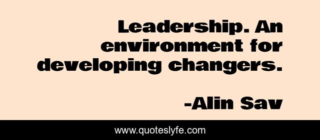 This page presents the quote "Leadership. An environment for developing changers.". Author of this quote is Alin Sav. .