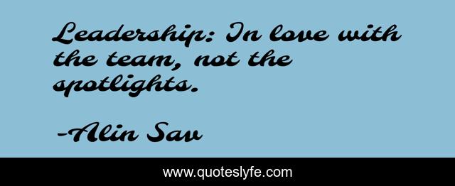 This page presents the quote "Leadership: In love with the team, not the spotlights.". Author of this quote is Alin Sav. .