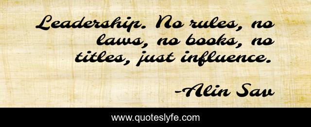 This page presents the quote "Leadership. No rules, no laws, no books, no titles, just influence.". Author of this quote is Alin Sav. .