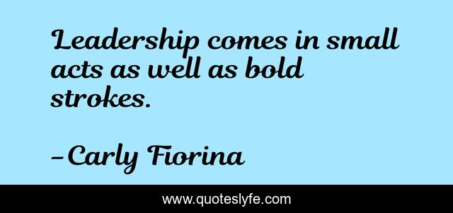 This page presents the quote "Leadership comes in small acts as well as bold strokes.". Author of this quote is Carly Fiorina. This quote is about small, well, bold,.