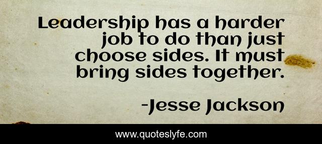 This page presents the quote "Leadership has a harder job to do than just choose sides. It must bring sides together.". Author of this quote is Jesse Jackson. This quote is about bring, job, together,.