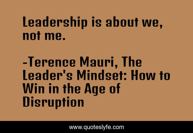 "Terence Mauri, The Leader's Mindset: How to Win in the Age of Disruption Quotes." Quoteslyfe.com, 2025. Sun. 07 Dec. 2025. <https://www.quoteslyfe.com/quote/Leadership-is-about-we-not-me-235601>.