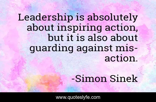 This page presents the quote "Leadership is absolutely about inspiring action, but it is also about guarding against mis-action.". Author of this quote is Simon Sinek. This quote is about action, guarding, against,.