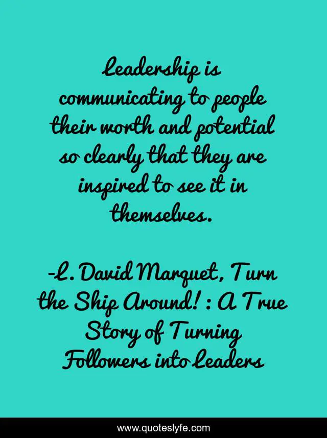"L. David Marquet, Turn the Ship Around!: A True Story of Turning Followers into Leaders Quotes." Quoteslyfe.com, 2025. Sun. 07 Dec. 2025. <https://www.quoteslyfe.com/quote/Leadership-is-communicating-to-people-their-worth-205117>.