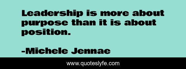 This page presents the quote "Leadership is more about purpose than it is about position.". Author of this quote is Michele Jennae. This quote is about leading, character, leadership, values, characteristics-of-leadership, purpose,.