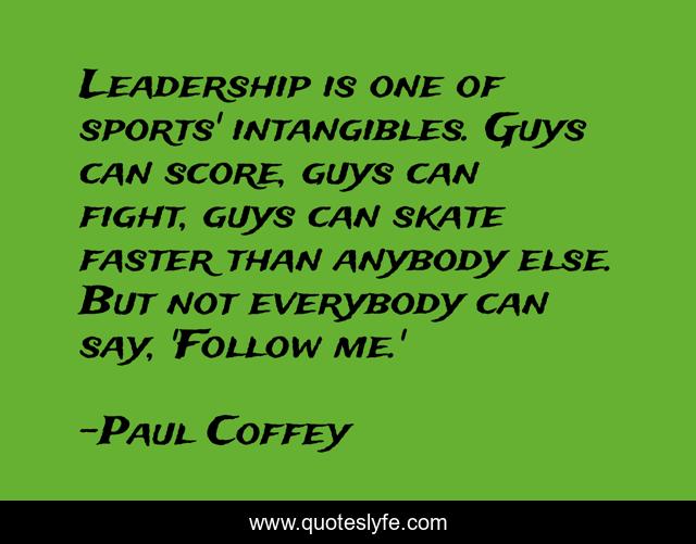 This page presents the quote "Leadership is one of sports' intangibles. Guys can score, guys can fight, guys can skate faster than anybody else. But not everybody can say, 'Follow me.'". Author of this quote is Paul Coffey. This quote is about me, leadership, fight,.