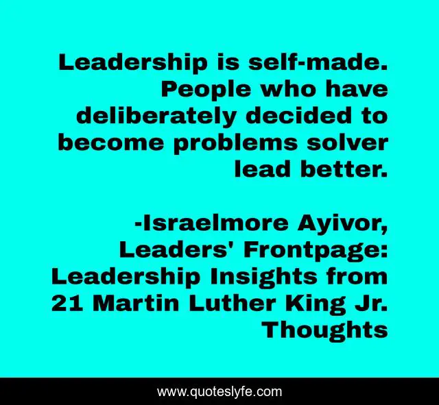 "Israelmore Ayivor, Leaders' Frontpage: Leadership Insights from 21 Martin Luther King Jr. Thoughts Quotes." Quoteslyfe.com, 2025. Mon. 08 Dec. 2025. <https://www.quoteslyfe.com/quote/Leadership-is-self-made-People-who-have-51387>.