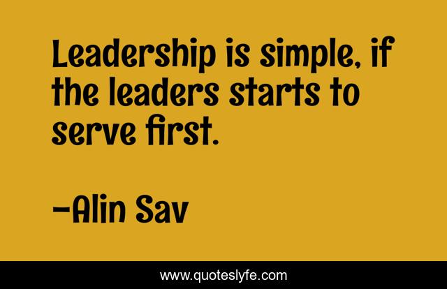 This page presents the quote "Leadership is simple, if the leaders starts to serve first.". Author of this quote is Alin Sav. .