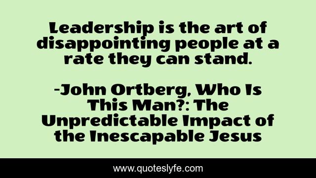 "John Ortberg, Who Is This Man?: The Unpredictable Impact of the Inescapable Jesus Quotes." Quoteslyfe.com, 2025. Mon. 08 Dec. 2025. <https://www.quoteslyfe.com/quote/Leadership-is-the-art-of-disappointing-people-244419>.