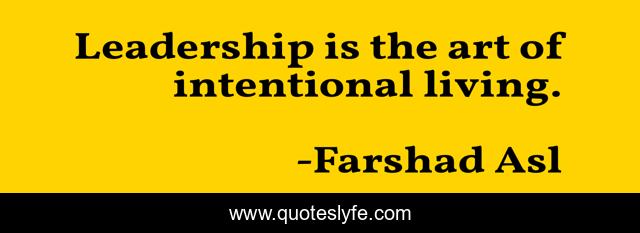 This page presents the quote "Leadership is the art of intentional living.". Author of this quote is Farshad Asl. This quote is about leadership, art, intentional-living,.