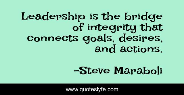 This page presents the quote "Leadership is the bridge of integrity that connects goals, desires, and actions.". Author of this quote is Steve Maraboli. This quote is about leadership, integrity, goals, actions,.