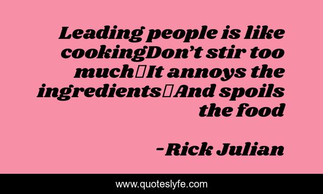 "Rick Julian Quotes." Quoteslyfe.com, 2026. Wed. 14 Jan. 2026. <https://www.quoteslyfe.com/quote/Leading-people-is-like-cookingDon-t-stir-63987>.