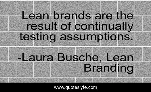 This page presents the quote "Lean brands are the result of continually testing assumptions.". Author of this quote is Laura Busche, Lean Branding. This quote is about business, personal-branding, brand, innovation, entrepreneurship, design, inspirational, branding, enthusiasm,.