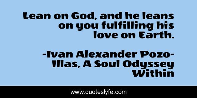 This page presents the quote "Lean on God, and he leans on you fulfilling his love on Earth.". Author of this quote is Ivan Alexander Pozo-Illas, A Soul Odyssey Within. This quote is about enthusiasm, spiritual, inspirational,.