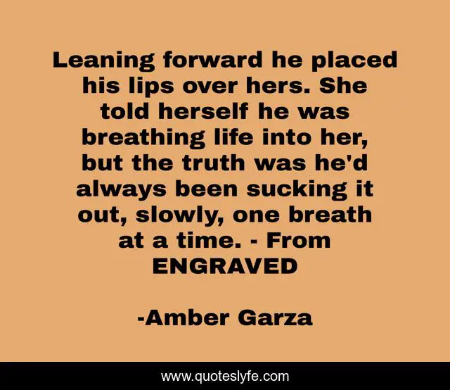 "Amber Garza Quotes." Quoteslyfe.com, 2025. Mon. 08 Dec. 2025. <https://www.quoteslyfe.com/quote/Leaning-forward-he-placed-his-lips-over-217614>.