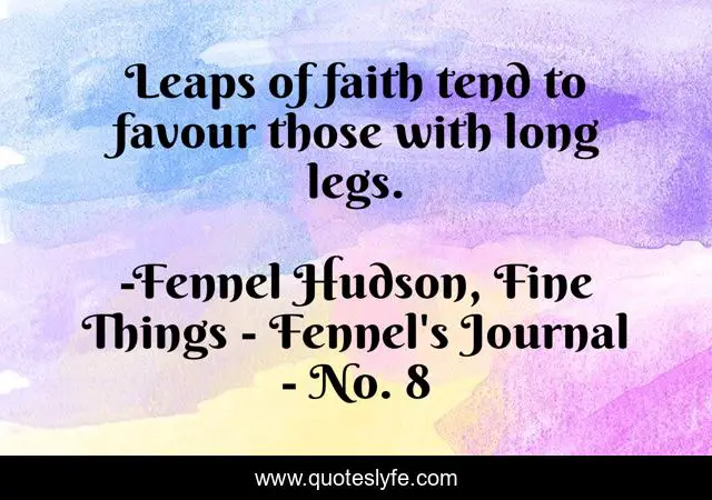 "Fennel Hudson, Fine Things - Fennel's Journal - No. 8 Quotes." Quoteslyfe.com, 2025. Mon. 08 Dec. 2025. <https://www.quoteslyfe.com/quote/Leaps-of-faith-tend-to-favour-those-180911>.