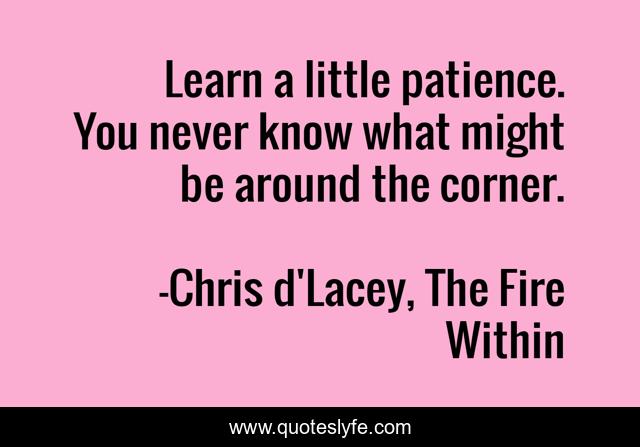 "Chris d'Lacey, The Fire Within Quotes." Quoteslyfe.com, 2025. Fri. 05 Dec. 2025. <https://www.quoteslyfe.com/quote/Learn-a-little-patience-You-never-know-193210>.