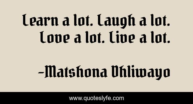 "Matshona Dhliwayo Quotes." Quoteslyfe.com, 2025. Sat. 06 Dec. 2025. <https://www.quoteslyfe.com/quote/Learn-a-lot-Laugh-a-lot-Love-48441>.
